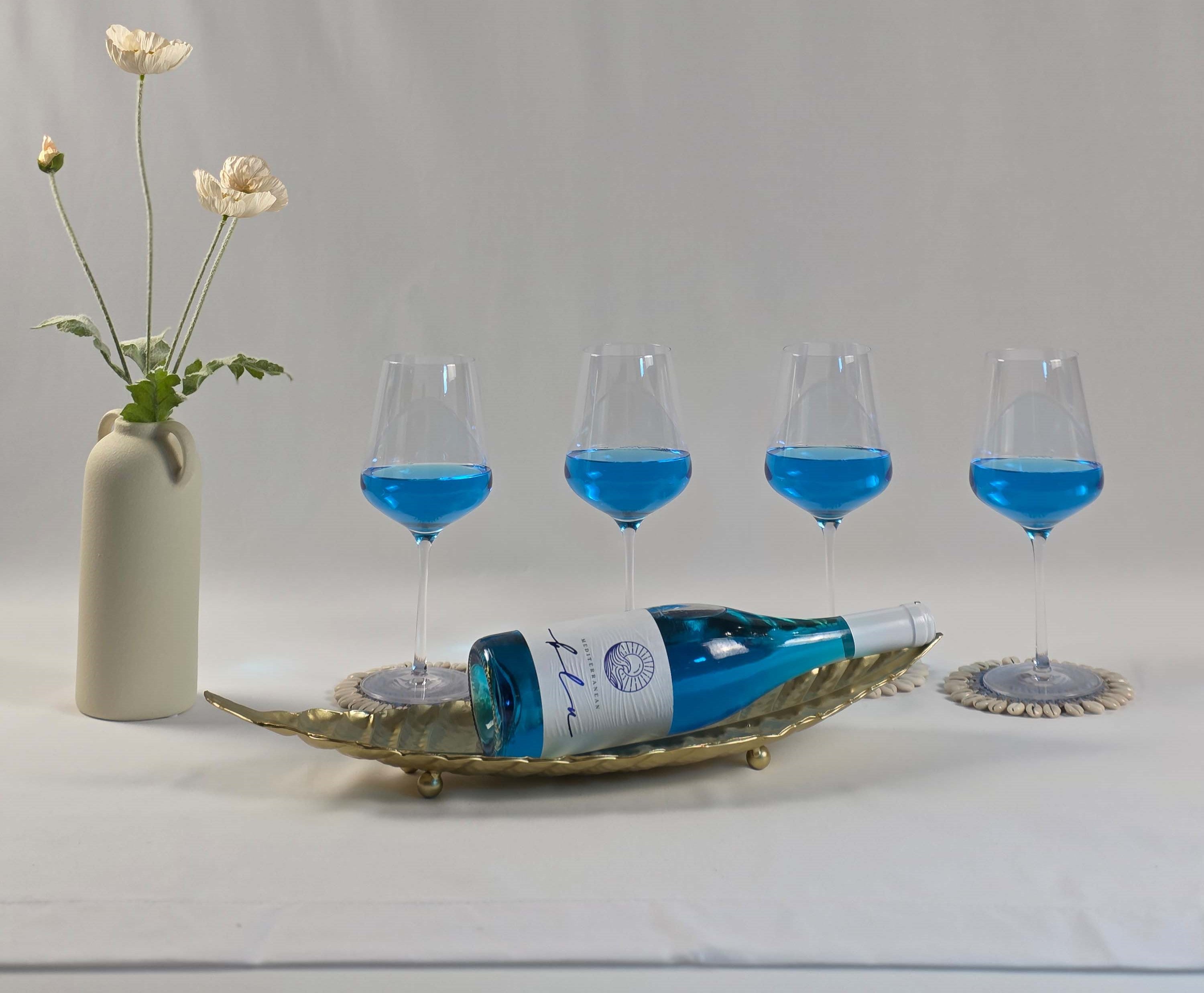 This striking blue wine is as refreshing as it is unique. Although technically dry, it offers a delicate touch of sweetness that makes it beautifully balanced and easy to enjoy. Light and fruity, it features subtle hints of berries, raspberries, lychee, and citrus.